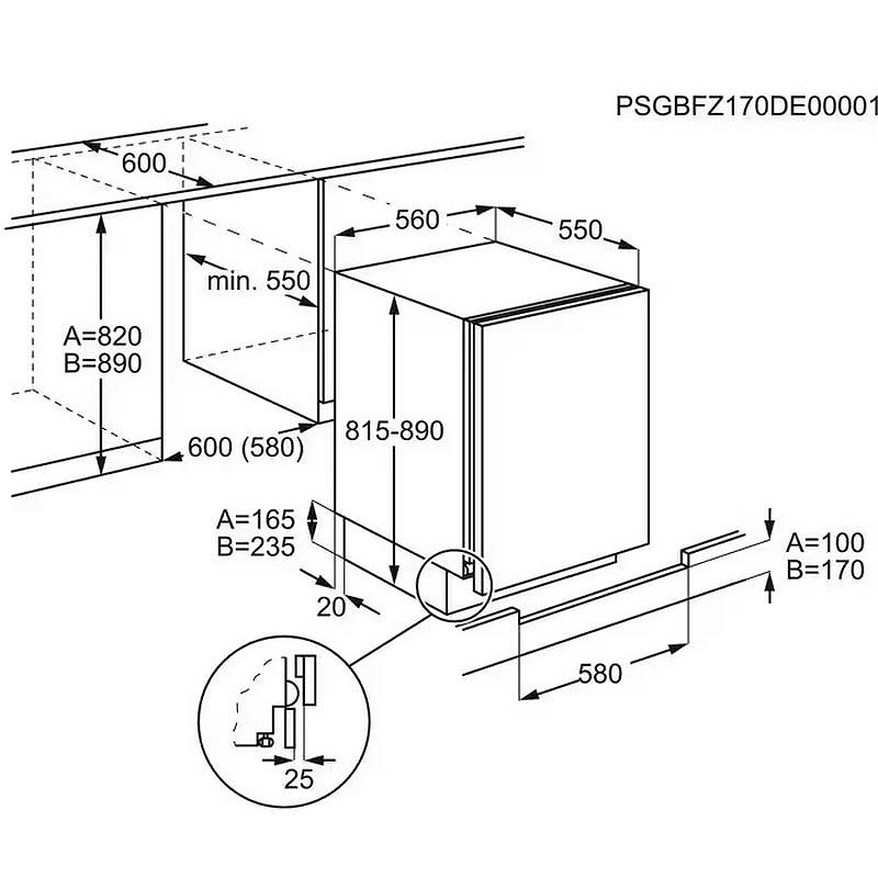 Размери за вграждане (В/Ш/Д) (mm): 815/560/550