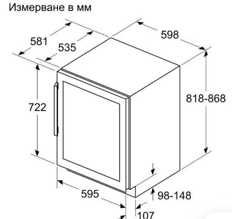 - Размери за вграждане (В x Ш x Д): 82.0 см x 60.0 см x 56.0 см