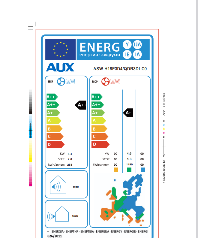 • Енергиен клас на охлаждане / отопление (умерена зона):A++ / A+