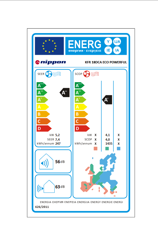 Енергиен клас на охлаждане / отопление (умерена зона):A++ / A +