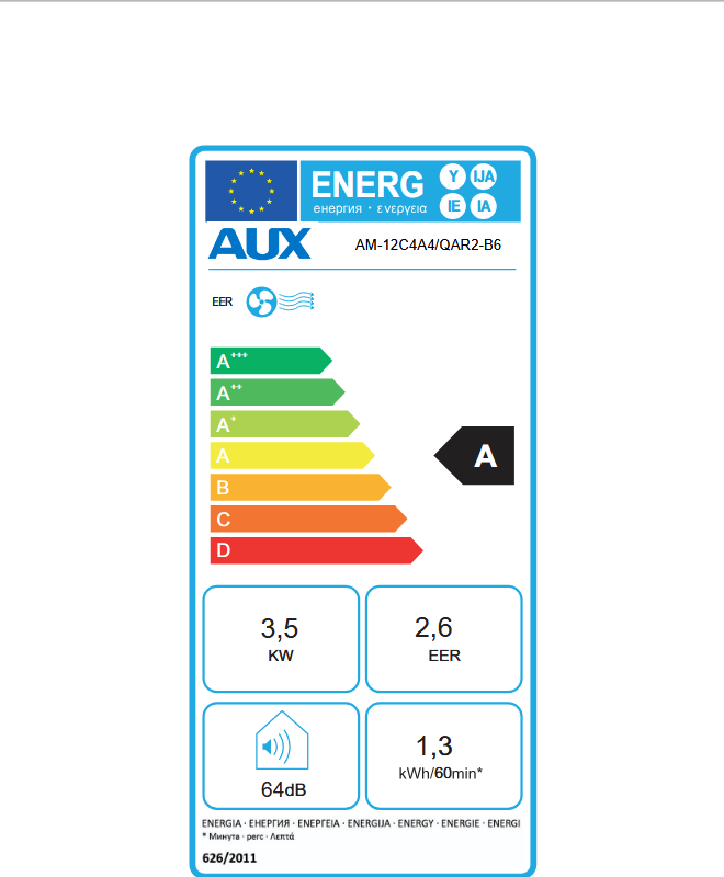 - Енергиен клас на охлаждане / отопление (умерена зона):A / A