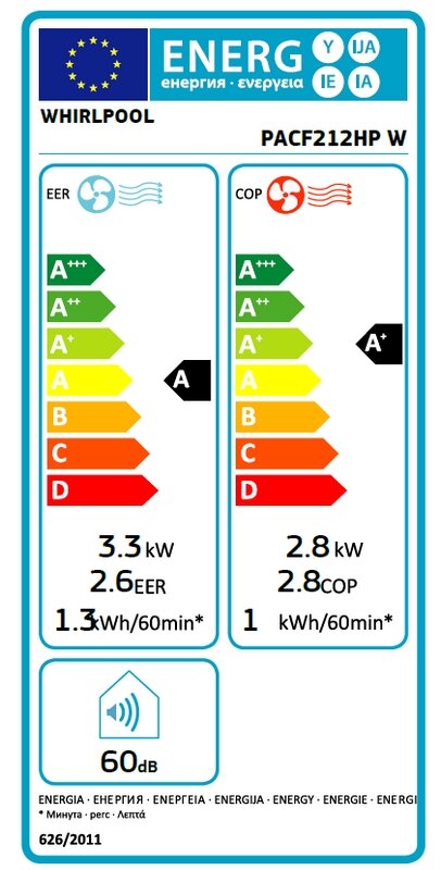 Мобилна система Whirlpool PACF212HP W – мобилен климатик , 12000 охл/отопление BTU, A