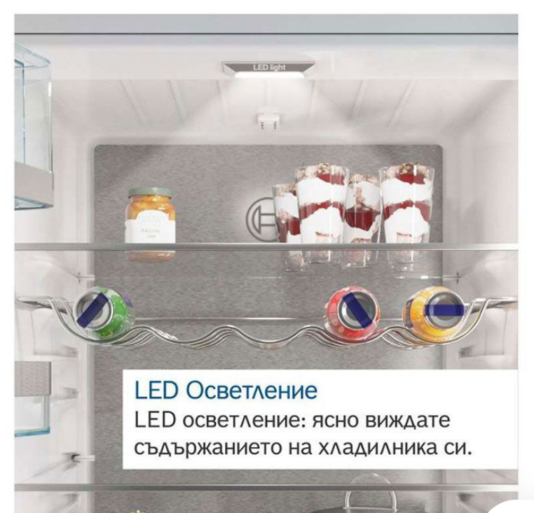 • LED осветление: осветява хладилника равномерно без блясък, през целия жизнен цикъл на уреда.