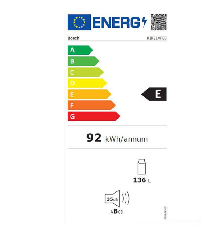 Мощност и потребление Хладилник за вграждане BOSCH KIR21VFE0