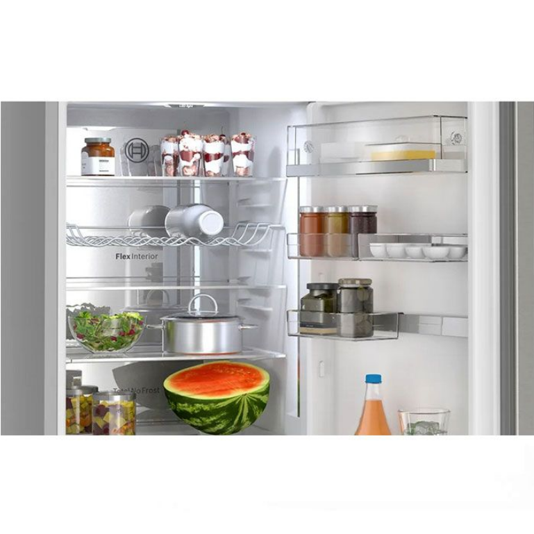 СЕРИЯ 6 СВОБОДНОСТОЯЩ ХЛАДИЛНИК С ДОЛЕН ФРИЗЕР С ОБЩ ОБЕМ 363 л. НЕРЪЖДАЕМА СТОМАНА СЪС ЗАЩИТА ОТ ОТПЕЧАТЪЦИ, Total No Frost. 203 x 60 cm. КЛАС „А“.